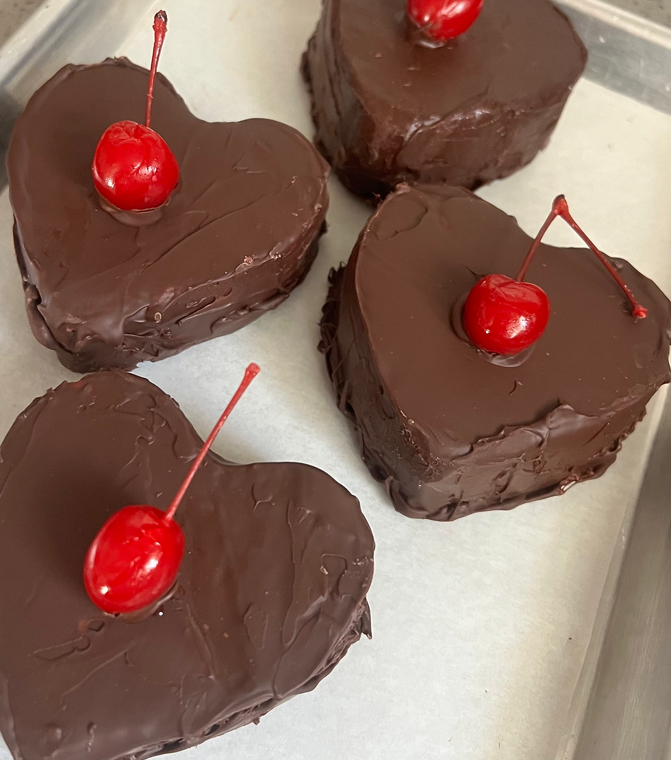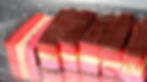 7 layers for good luck. Raspberry and apricot jam layered between moist layers of almond cake with a semi sweet chocolate shell.